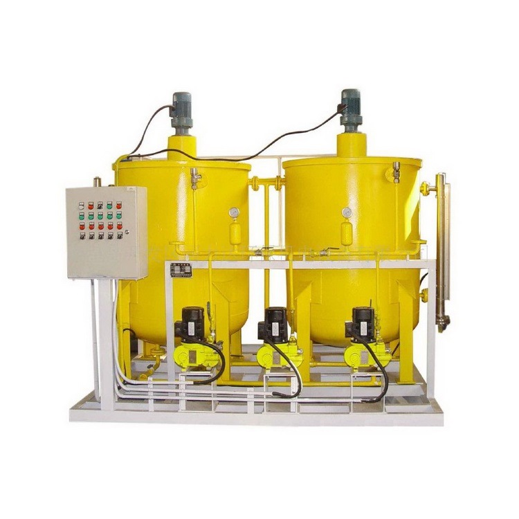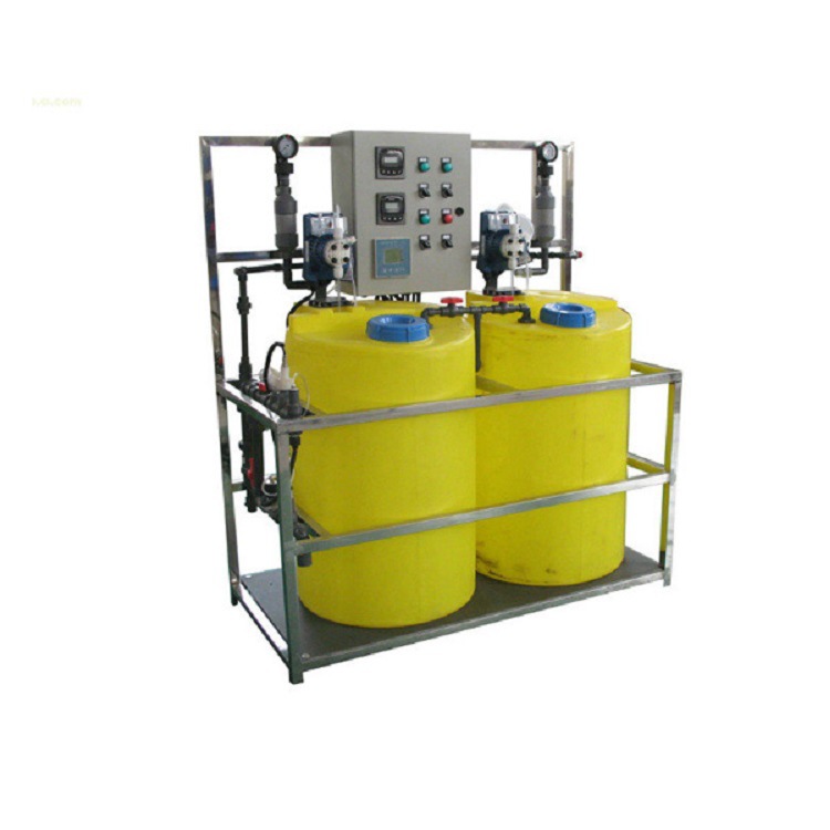 加藥裝置,通過不同的工藝設計,配置各類固體和液體的化學藥品的溶液,再用計量泵準確投加,以達到各種設計要求。如除垢、除氧、混凝、加酸、加堿等。加藥過程可手動操作,也可通過PC機、磁翻板液位計、PH計、行程控制器、變頻器等各種電器、儀表、使加藥裝置成為機電一體化產品、實現自動控制。