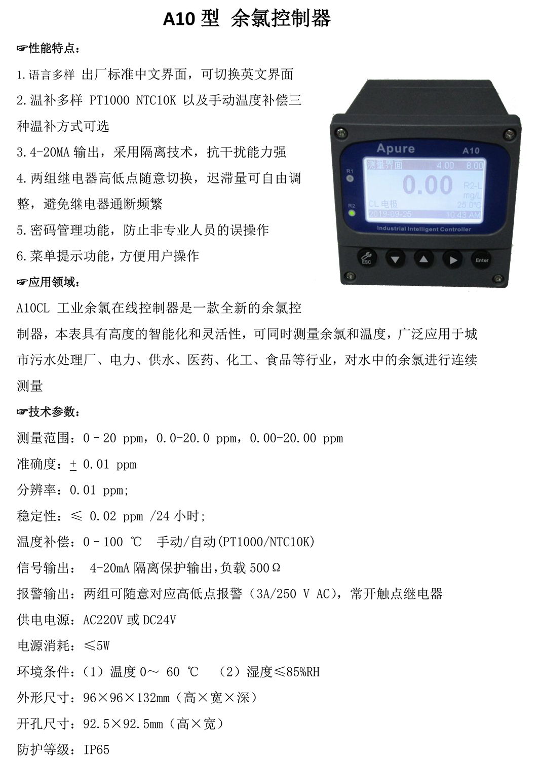 Apure愛普爾A10CL兩組繼電器工業在線余氯控制器一套含電極