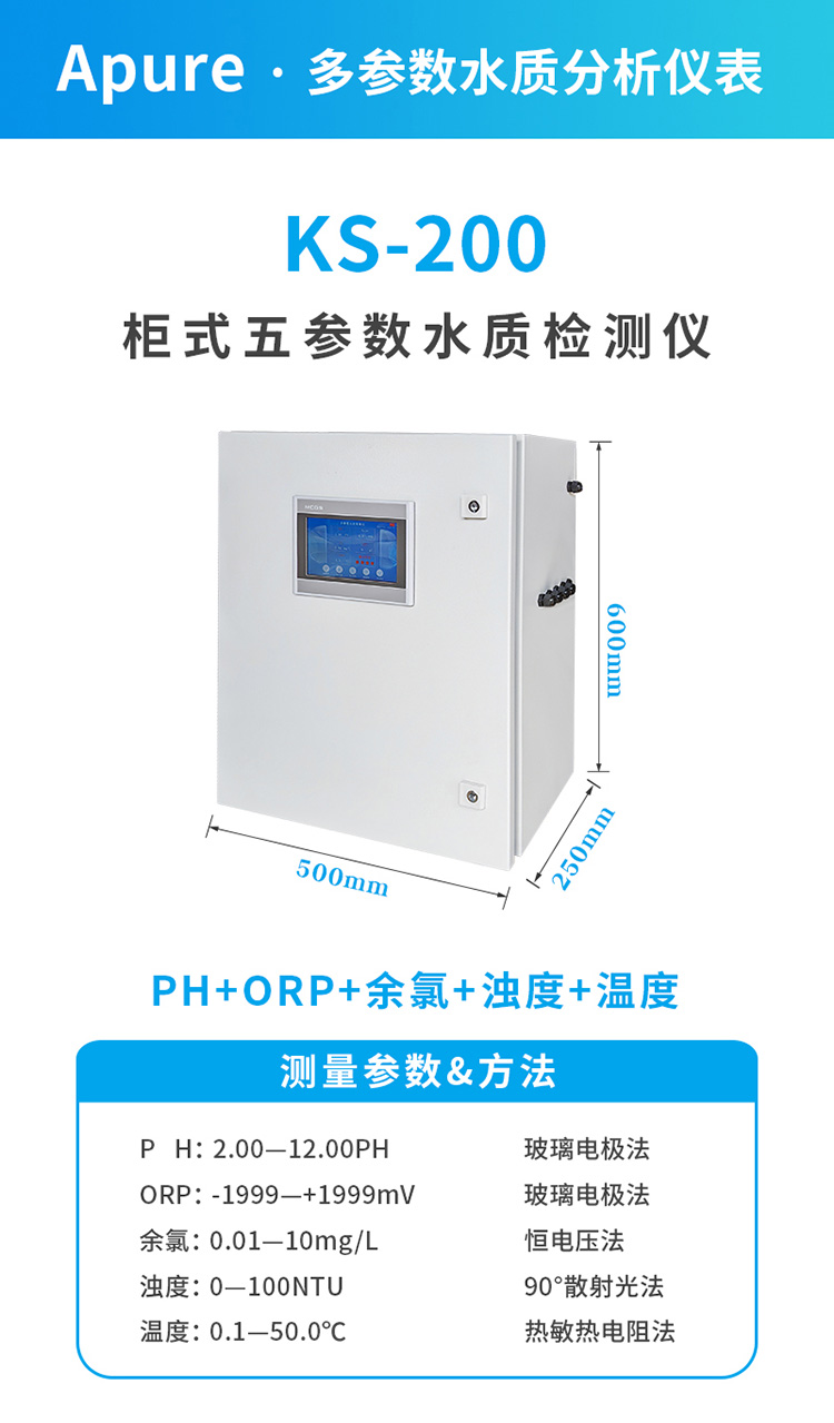 Apure多參數水質檢測儀KS-200型柜式五參數分析儀PHORP余氯測試儀