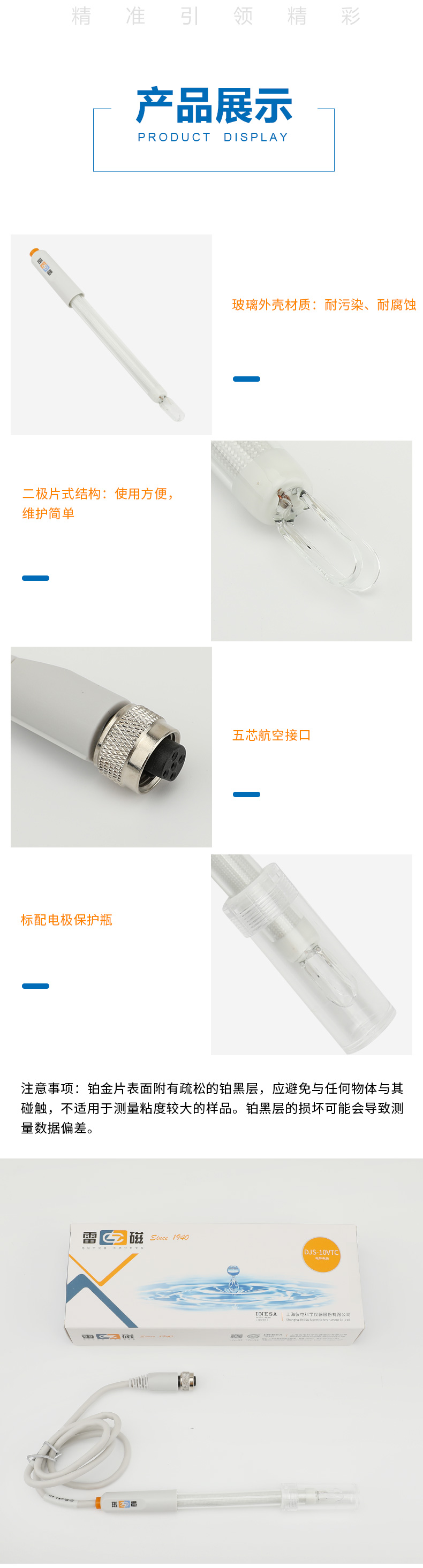【雷磁】 實驗室電導率傳感器 DJS-10VTC 型電導電極【鉑黑】