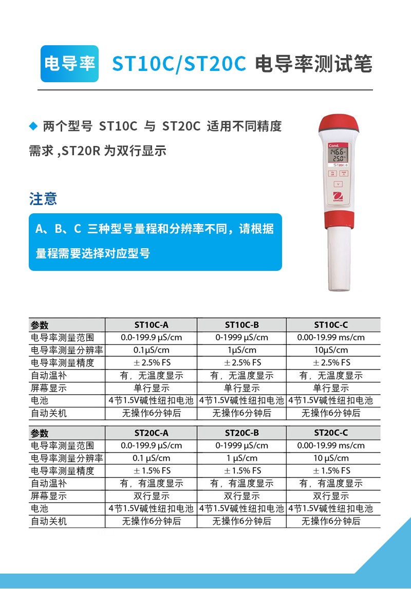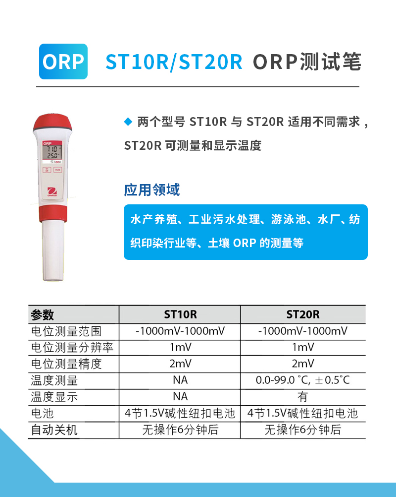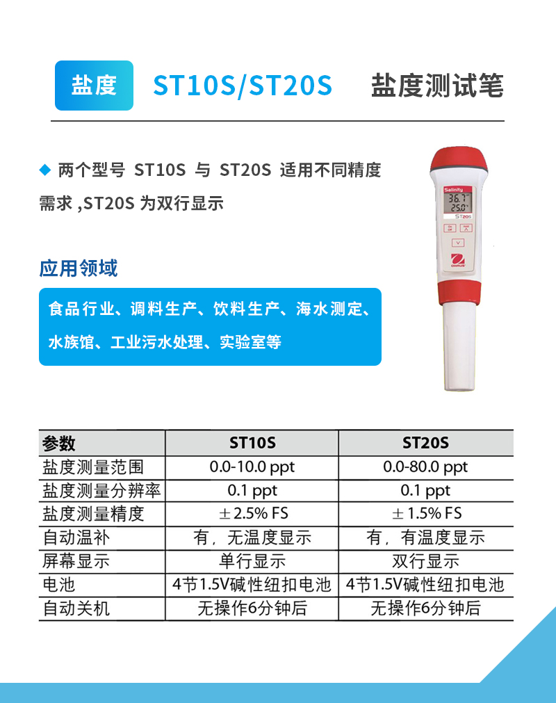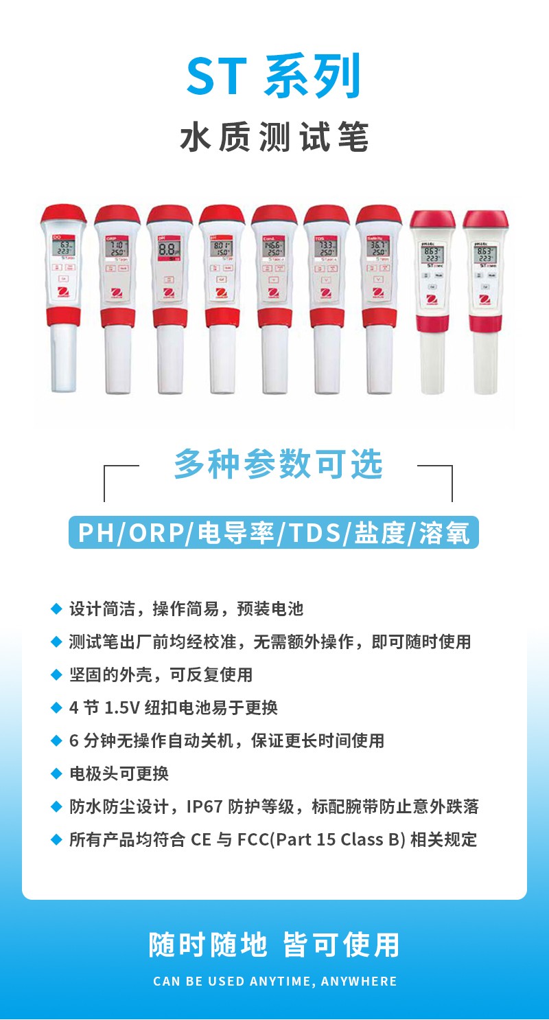 奧豪斯水質測試筆ST系列便攜式多參數/PH/ORP/電導率/TDS/鹽度/溶解氧水質測試儀