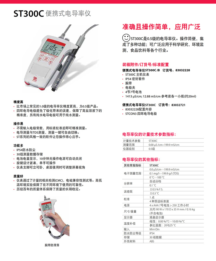 奧豪斯便攜式電導率儀ST300C防水防塵多功能工業在線電導率測試儀