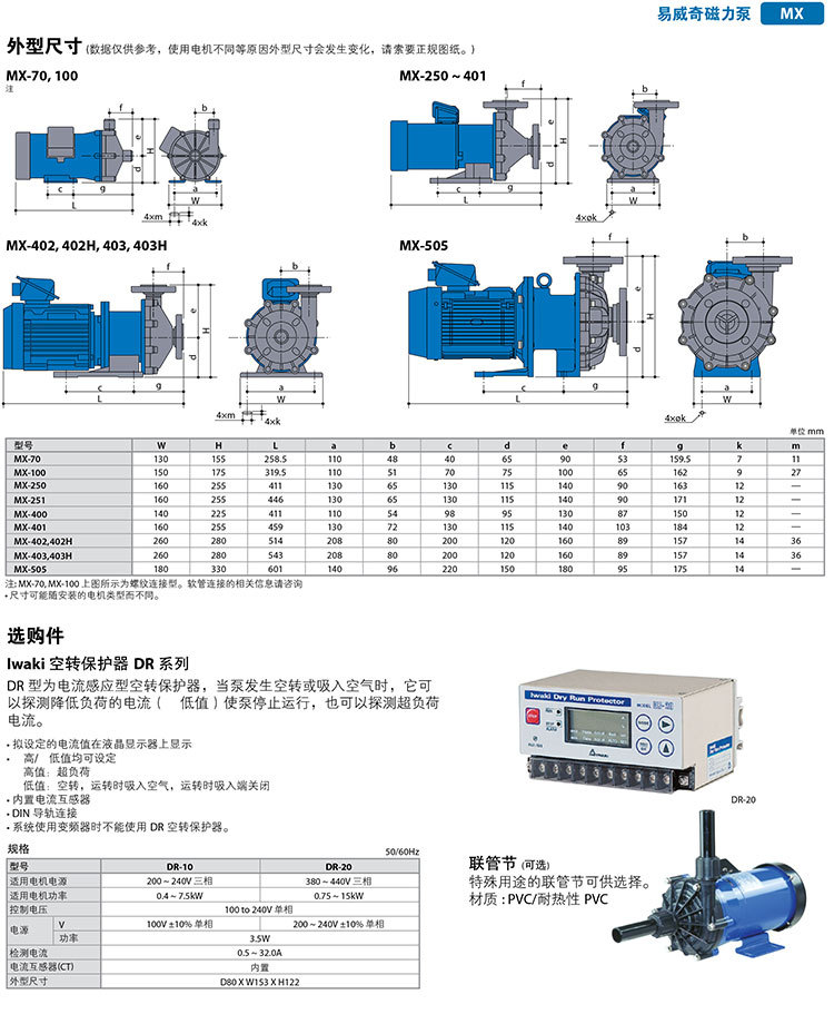 【IWAKI】易威奇磁力泵MX-250型耐酸堿耐磨水泵GFRPP材質磁力驅動泵