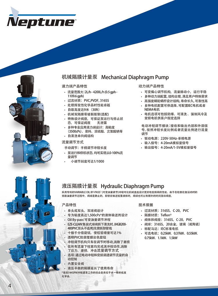 ? 標準計量泵可以輸送水樣澄清介質至粘度達到2,500cPs的介質